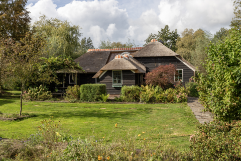 De besloten tuin rondom de woning is een waar toevluchtsoord, met meerdere terrassen waar u in alle rust en privacy kunt genieten. Via de achterom bereikt u eveneens deze groene oase. Het eigen boothuis maakt het plaatje compleet: vanaf hier vaart u rechtstreeks de schilderachtige wateren van Giethoorn en het natuurgebied De Weerribben-De Wieden op.
